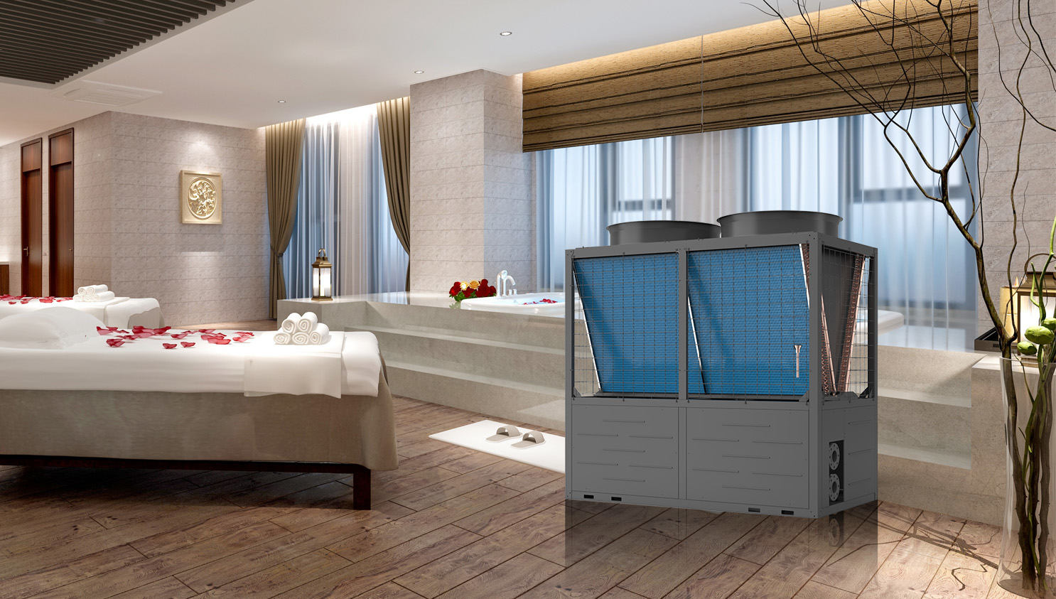 酒店空氣能熱水系統你提供24小時恒溫熱水,即開即有。55℃恒溫、強勁、舒適的酒店中央熱水,熱水充足洗澡需求不用等候。做高品質酒店空氣能熱水工程,選哈唯空氣能。